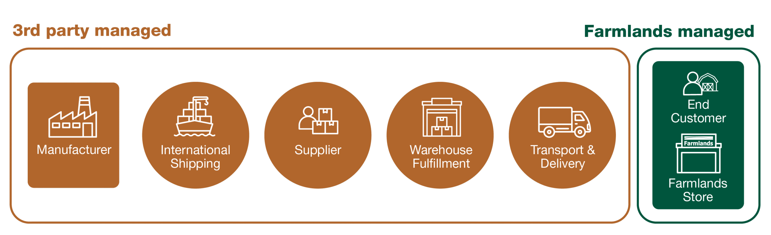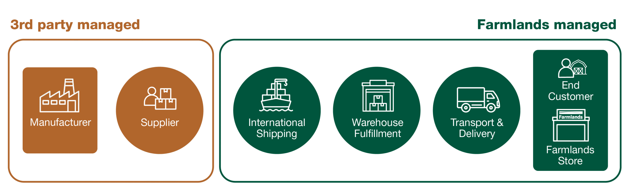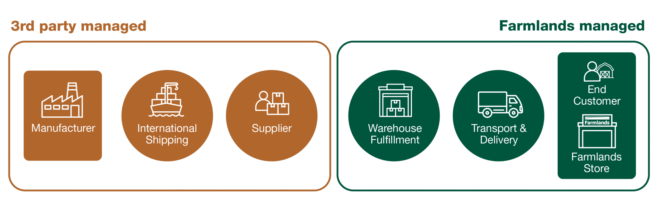 We’ve changed how we get products to our customers. Previously, suppliers handled the journey from their warehouse to one of our local branches, and then to farms. Now, Farmlands is taking the lead.