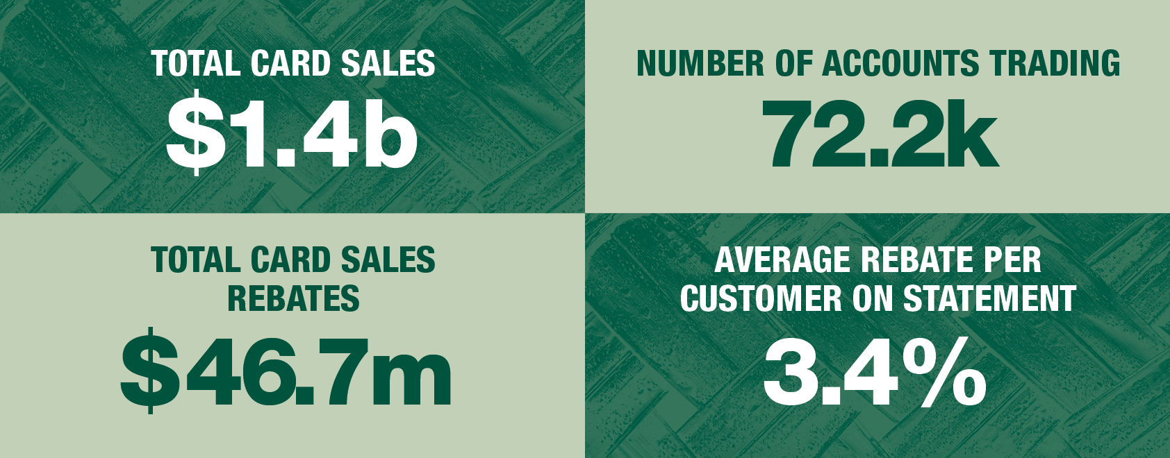 This year, the Farmlands Card has continued its journey of putting more value back in your pocket. We continue to be strong with $1.4 billion in total Card sales with our partners, nearly $46.7 million in customer on statement rebates, and over 6.1 million Card transactions. It’s no surprise that we continue to see strong engagement with the Card as a key tool for your business.